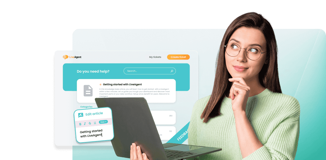 Lumikha ng propesyonal na mga artikulo sa knowledge base gamit ang WYSIWYG editor ng LiveAgent, na m...