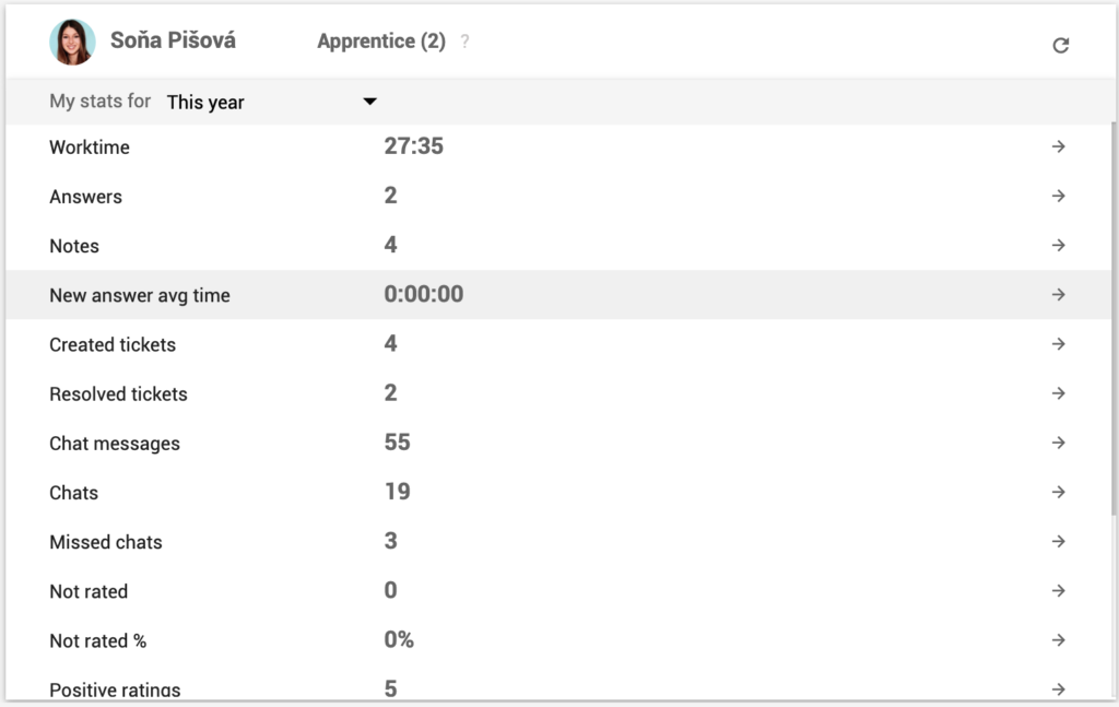 Mangyaring tandaan, na maaaring makita ng lahat ng mga ahente ang kanilang mga personal na istatistika/ulat ng pagganap sa pag-log in sa LiveAgent.
