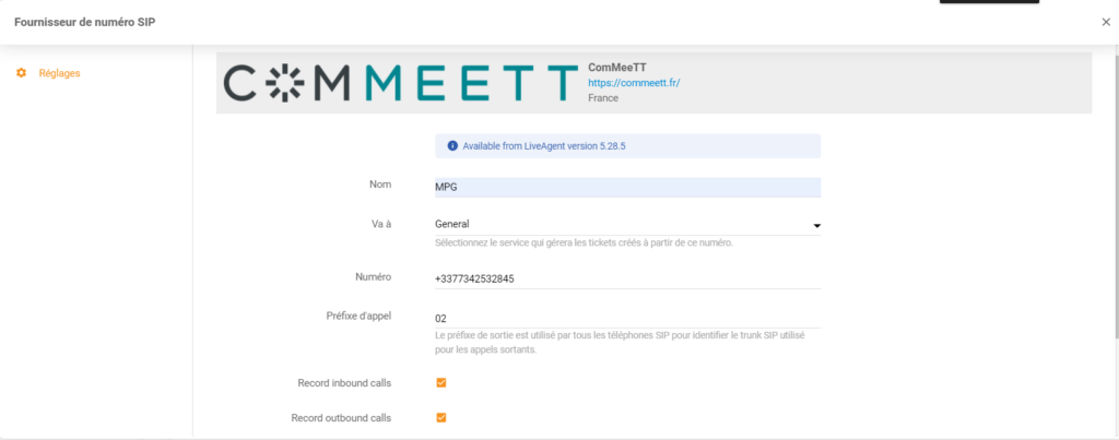 - Paano mag-implement ng ComMeeTT VoIP number sa loob ng LiveAgent?- Puntahan lang ang Configurations > Call > Numbers > ComMeeTT. Ilagay ang VoIP number at gamitin ito agad.