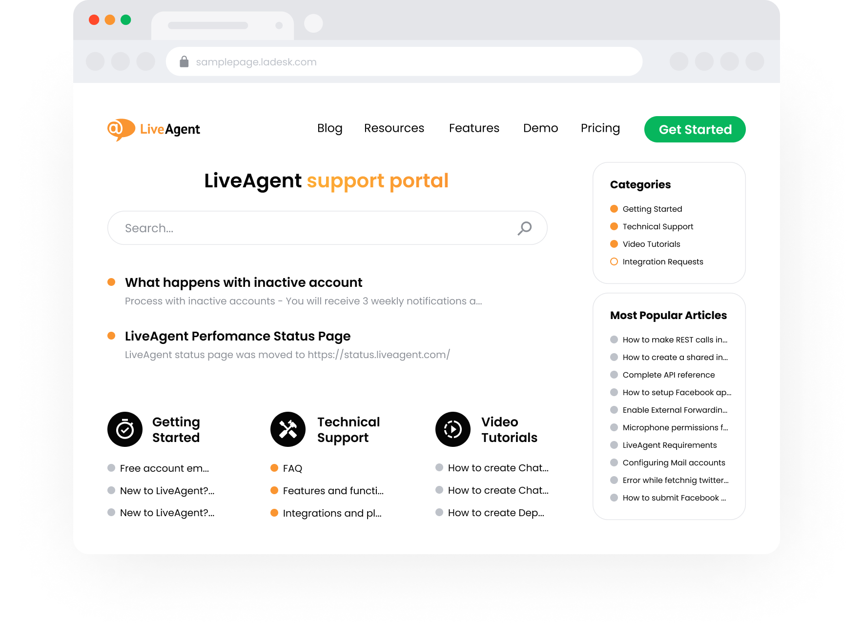 Dahil tutulungan kayo ng LiveAgent na makasali sa larangan ng knowledge base sa magandang presyo at konting effort lang. Makakakuha kayo agad ng sarili ninyong knowledge base website pagkatapos ng registration kaya makakagawa na kayo agad ng articles. Tutulungan kayo ng aming features sa bawat hakbang at magagamit ninyo ang marami naming integrations para mapaganda pa ang paggamit.