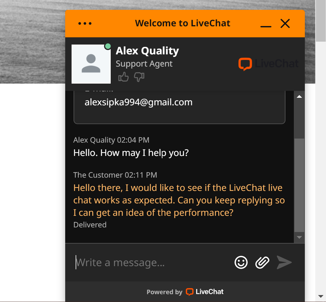 Sa kabuuan, mahusay ang performance ng live chat widget ng LiveChat at wala kaming anumang reklamo. Hindi kami nakaranas ng anumang mga isyu sa speed, at wala ring bugs o mga problemang nakita. Ang widget ng LiveChat is isang malakas na kompetisyon pagdating sa performance.