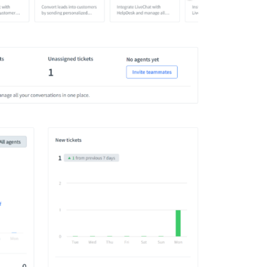 Ang analytics features ay may offer na mabilisang overview, pati na rin ang in-depth overviews ng lahat ng may kinalaman sa live chat – chats, agents, customers, tickets, at eCommerce. Ang bawat section ay nagbibigay sa inyo ng mas maraming impormasyon at tamang bilang tungkol sa inyong live chat. Walang kulang. Ang analytics overview ay nagbibigay sa inyo ng record ng lahat ng nangyari sa nakaraang pitong araw ng inyong paggamit.