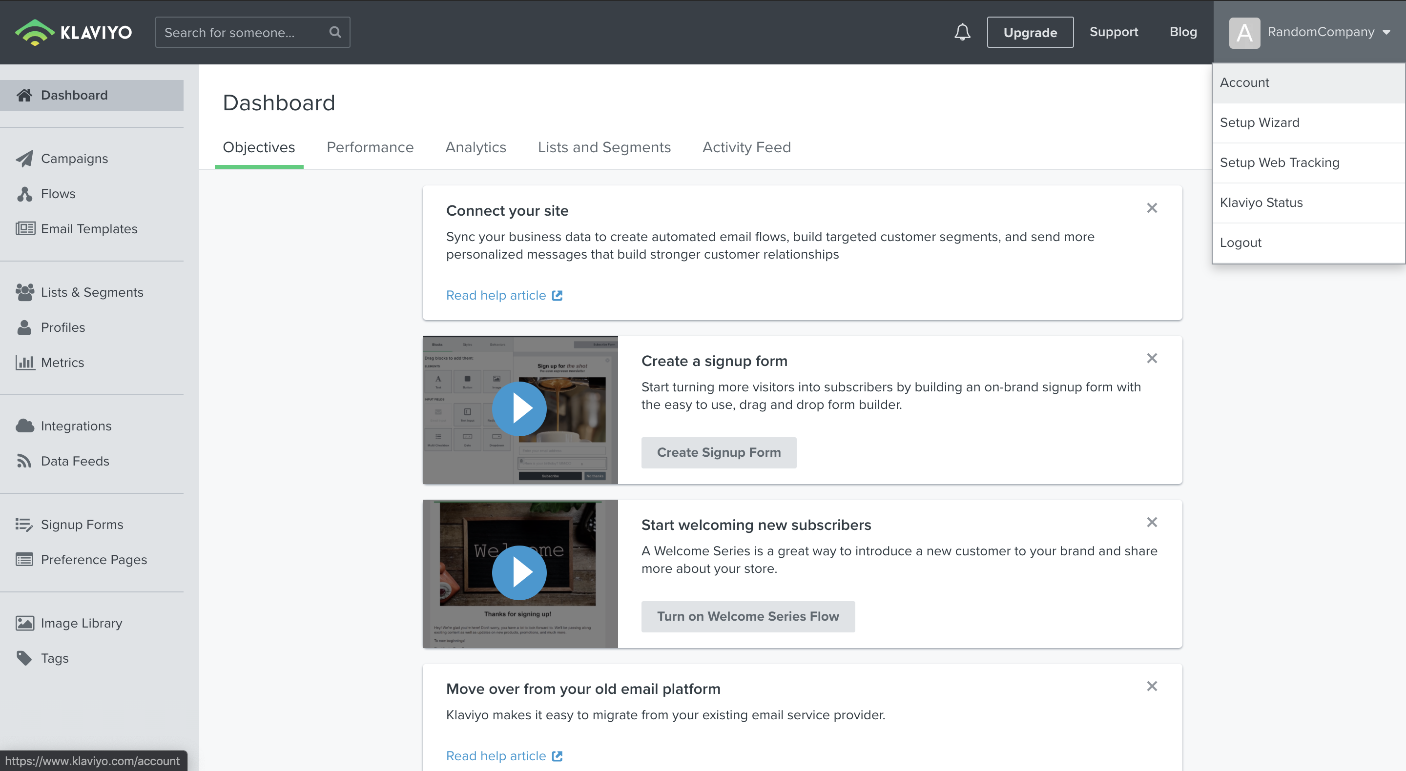 Ang Klaviyo ay platapormang pag-awtomatiko ng pagmemerkado na nag-aalok ng segmentasyon ng kustomer, pag-benchmark at pagsusuri ng data. Ang plataporma ay tahasang nagdadalubhasa sa pag-awtomatiko ng email at SMS, na nangangakong maghahatid ng isinapersonal na nilalaman at patataasin ang pakikipag-ugnayan ng kustomer.